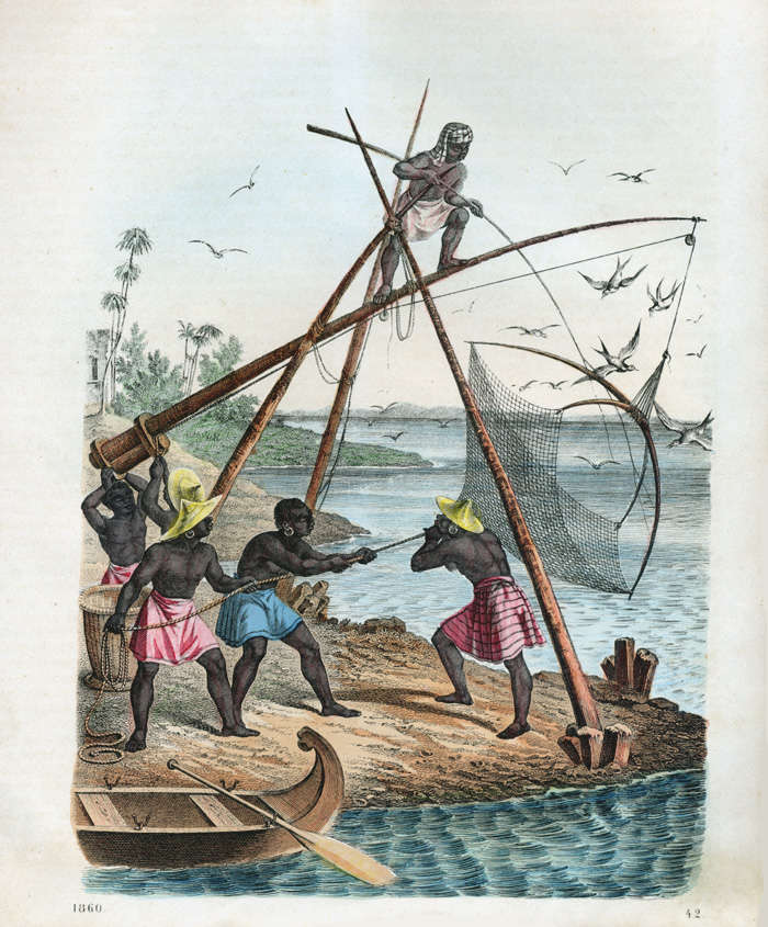 Das Buch Der Welt (Le Livre du Monde) de l'allemand Carl Hoffmann (1802-1883), gravure intitul�e Ostindische Fischer, Stuttgart, 1842-48