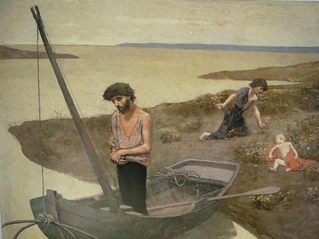 Pierre-C�cile Puvis de Chavannes (1824 - 1898) "Pauvre p�cheur", peinture sur toile de 1881, illustrant un p�cheur au carrelet.
