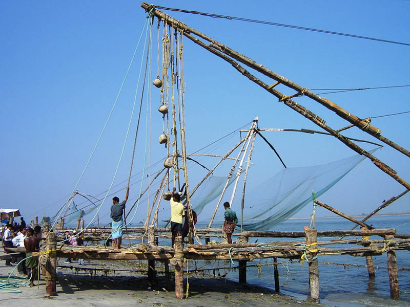 P�che au carrelet � Cochin (Inde, Etat du K�rala)